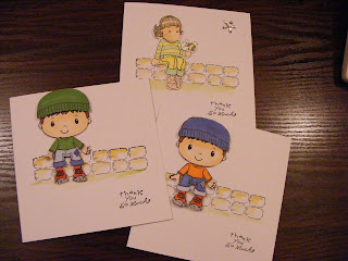 Three simple cards for three children that gave me presents this summer at school. For the boys I used my new Patchwork Pals stamps from QVC. As these were for the kids they were really quick ones!! I think I'm going to like these stamps. I'm waiting for the 'girl' ones to come!!